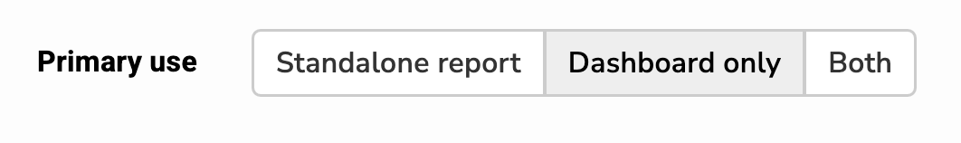 - Dashboard only: The report will be used as a Dashboard tile only.